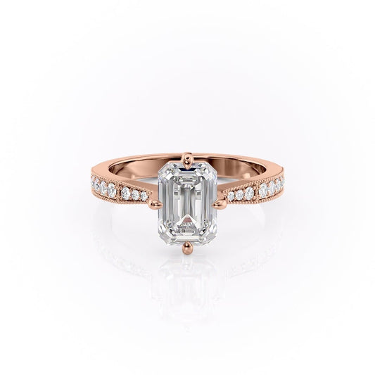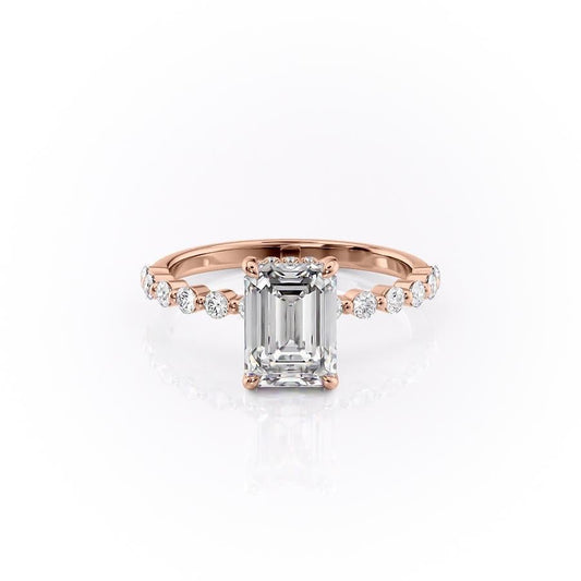 2.1 CT Emerald Dainty Pave Lab Grown Diamond Engagement Ring