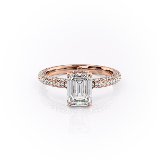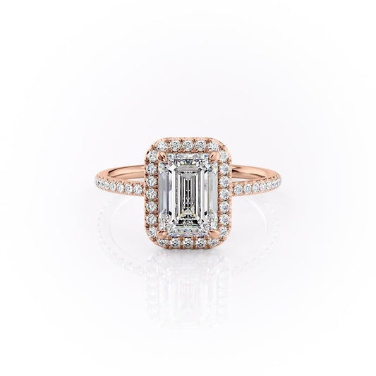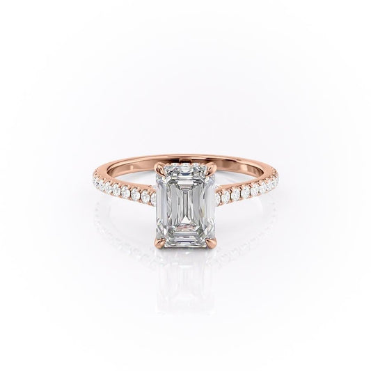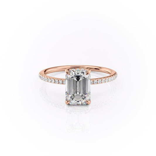 2.1 CT Emerald Hidden Halo & Dainty Pave Lab Grown Diamond Engagement Ring