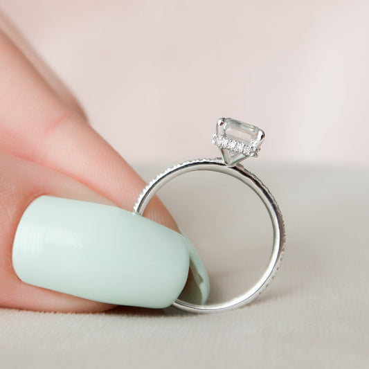2 CT Emerald Hidden Halo Lab Grown Diamond Engagement Ring