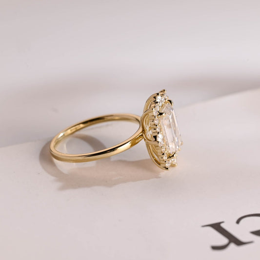 2.0 CT Emerald Hidden Halo Lab Grown Diamond Engagement Ring