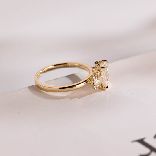 2.0 CT Emerald Cluster Moissanite Engagement Ring