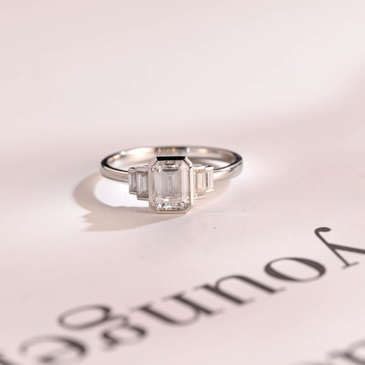 2.0 CT Emerald Bezel & Cluster Moissanite Engagement Ring