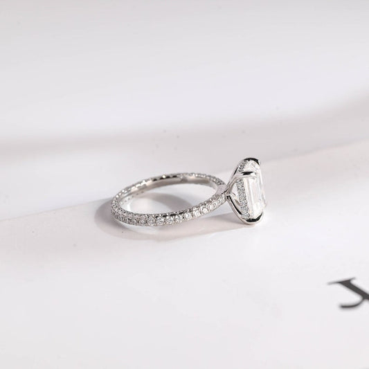 2.0 CT Hidden Halo Emerald Moissanite Engagement Ring