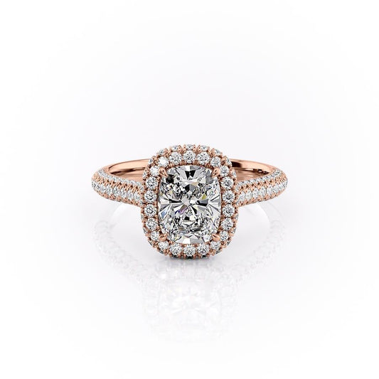 1 CT Cushion Halo & Pave Lab Grown Diamond Engagement Ring