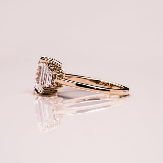 1.9 CT Emerald Three Stone Lab Grown Diamond Engagement Ring